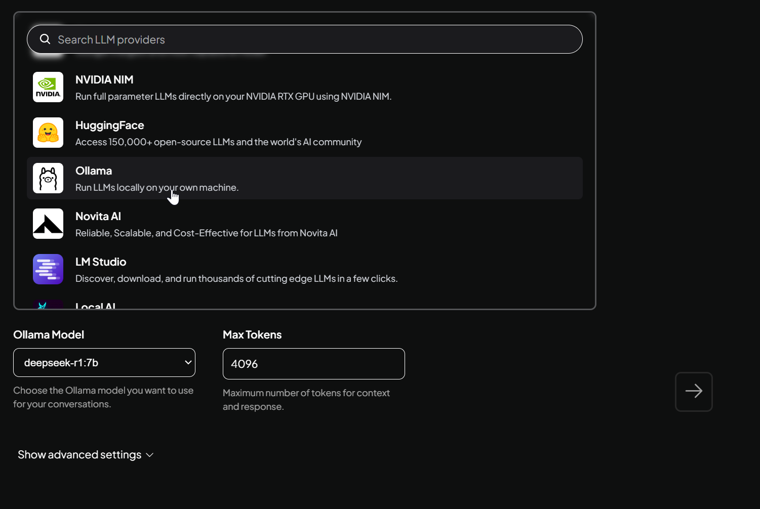 - Just choose provider Ollama in Search LLM provider window and it will identify you installation automatically: