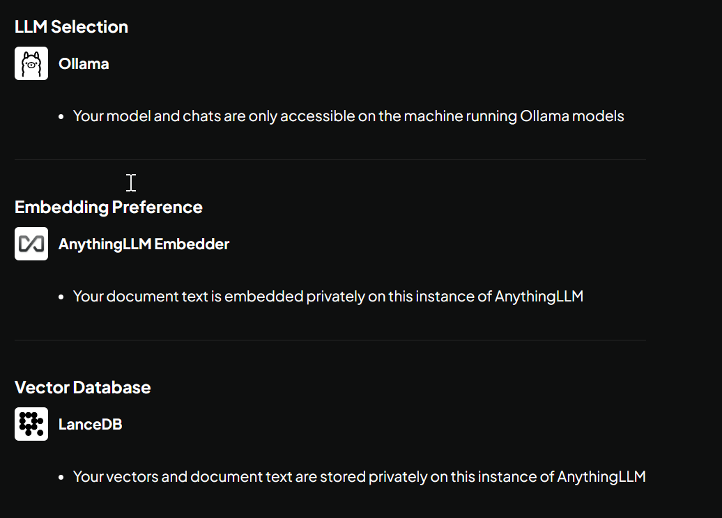 Once you have AnythingLLM installed, it is very easy to configure it utilize your local LLMs with Ollama.